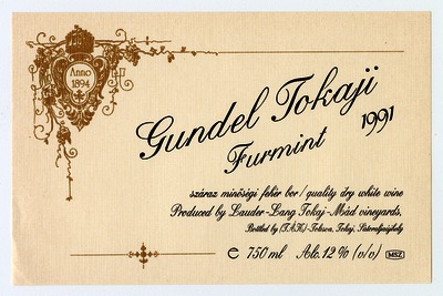 Kun, Zsanett (Digitalizáló): 1991-es tokaji furmint boroscímke a Lauder-Lang Tokaj-Mád vineyardstól. (Publikálatlan) (2024)