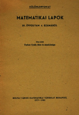 A tanulmány a Matematikai lapok : a Bolyai János Matematikai Társulat lapja 29. évfolyamának 4. számában megjelent írás különlenyomata.