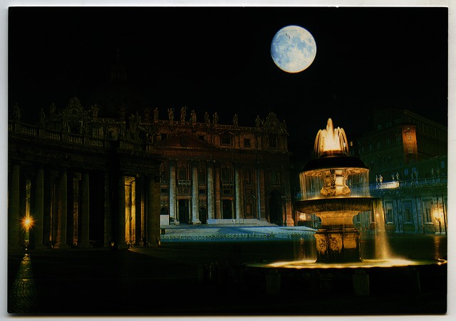 A telihold látványa nagyjából 29 naponta ismétlődik. Mindenhonnan érdekes és szép, de a Szent Péter térről nézve különös áhítat lengi körül. | The sight of the full moon is repeated every 29 days or so. It is interesting and beautiful from every site, but from St Peter's Square it has a special awe.