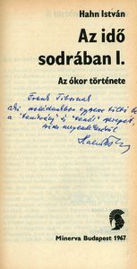 Hahn, István (Egyéb): Hahn István dedikációja Frank Tibornak Az ókor története 1. Az idő sodrában című munkájában [címlap és dedikáció]. (Publikálatlan) (1967)
