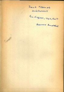 Hauser, Arnold (Egyéb): Arnold Hauser dedikációja Frank Tibornak A művészet és az irodalom társadalomtörténete című munkájában (ford. Nyilas Vera, Széll Jenő) [címlap és dedikáció]. (Publikálatlan) (1976)