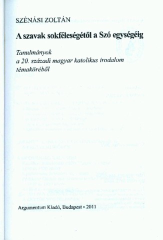 Szénási, Zoltán (Egyéb): Szénási Zoltán dedikációja Jankovics Józsefnek az A szavak sokféleségétől a Szó egységéig : tanulmányok a 20. századi magyar katolikus irodalom témaköréből című művében [címlap és dedikáció]. (Publikálatlan) (2011)