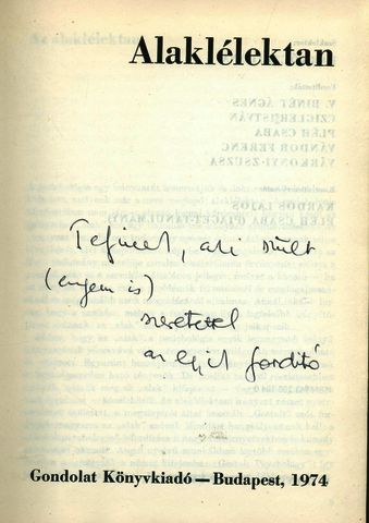 MEGHATÁROZATLAN (MEGHATÁROZATLAN): Dedikáció Kardos Lajos: Alaklélektan című munkájában Frank Tibor könyvtárából [címlap és dedikáció]. (Publikálatlan) (1974)