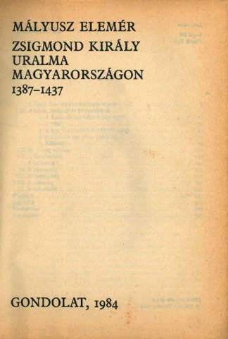 Mályusz, Elemér (Egyéb): Mályusz Elemér dedikációja a Zsigmond király uralma Magyarországon, 1387-1437 című munkájában Frank Tibor könyvtárából [címlap és dedikáció]. (Publikálatlan) (1984)