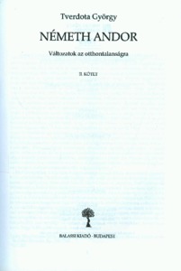 Tverdota, György (Egyéb): Tverdota György dedikációja Jankovics Józsefnek a Németh Andor 2., Változatok az otthontalanságra című munkájában [címlap és dedikáció]. (Publikálatlan) (2010)
