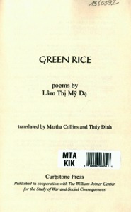 Lâm, Thị Mỹ Dạ (Egyéb): Lâm Thị Mỹ Dạ dedikációja Jankovics Józsefnek a Green rice : poems című munkájában [címlap és dedikáció]. (Publikálatlan) (2005)