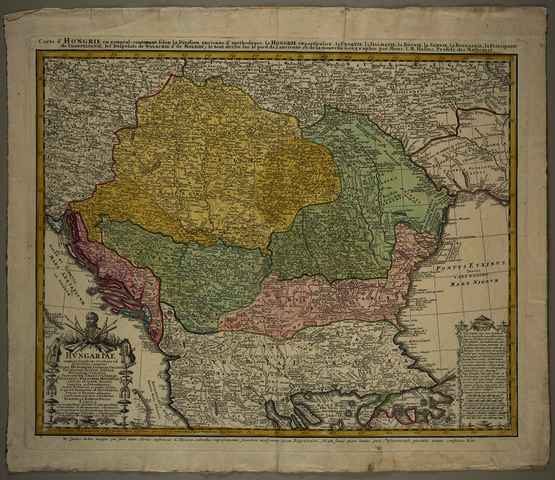 Egyéb cím: Hungariae ampliori significatu et veteris vel methodicae, complexae regna: Hungariae propriae, Croatiae Dalmatiae, Bosniae, Serviae, Bvlgariae, Cumaniae, Principatum: Transsylvaniae, Despotatus: Walachiae, Moldaviae, [exclusis ab eadem alienatis Galitia et Ludomiriria] in suas provincias ac partes divisae et quoad imperantes ex Austriacis, Turcis et venetis distinctae [juncta tamen propter com̄oditatem Romania vel Romelia Turcica] tabula |