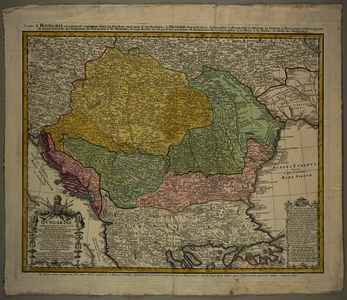 Hvngariae ampliori significatu et veteris vel methodicae, complexae regna: Hvngariae propriae, Croatiae Dalmatiae, Bosniae, Serviae, Bvlgariae, Cvmaniae, Principatvm: Transsylvaniae, Despotatvs: Walachiae, Moldaviae, [exclusis ab eadem alienatis Galitia et Lvdomiriria] in suas provincias ac partes divisae et quoad imperantes ex Avstriacis, Tvrcis et venetis distinctae [juncta tamen propter com̄oditatem Romania vel Romelia Tvrcica] tabvla.