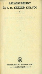 Varjas, Béla (Egyéb): Varjas Béla dedikációja Jankovics Józsefnek a Balassi Bálint és a 16. század költői I. című kötetben [címlap és dedikáció]. (Publikálatlan) (1979)