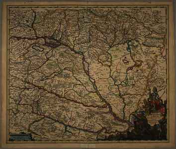 OSZK Földabrosz: A térkép 2. állapota, Délvidéken Peterwaradin, azaz Pétervárad nevével és telep. jelével bővítve, bizonnyal az 1688-s keresztény bevétel idején