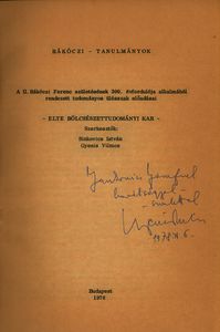 MEGHATÁROZATLAN (MEGHATÁROZATLAN): Dedikáció Jankovics Józsefnek Rákóczi tanulmányok : a II. Rákóczi Ferenc születésének 300. évfordulója alkalmából rendezett tudományos ülésszak előadásai című művében[címlap és dedikáció]. (Publikálatlan) (1978)