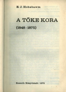 Hobsbawm, Eric John (Egyéb): E. J. Hobsbawm dedikációja Jankovics Józsefnek az A tőke kora: 1848-1875 című művében [címlap és dedikáció]. (Publikálatlan) (1979)