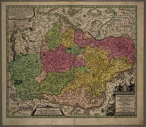 Seutter, Matthäus (Kartográfus): Transylvaniae principatus in quinque nationes divisus Longitudine 68 milliaria German. et latitudine 50 mill. Complectens,. (1741)