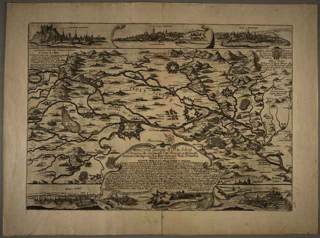 Vero e, real disegno dl Isola Schut in Vngaria colle circoniacenti Città Fortezze, et altri luoghi da Vienna Città Imperiale, fin, a Bvda Metropoli Reale d'Vngaria Secondo il lor natural sito.