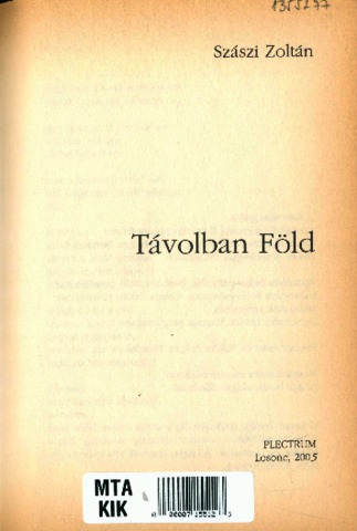 Szászi, Zoltán (Egyéb): Szászi Zoltán dedikációja Jankovics Józsefnek a Távolban Föld című kötetben [címlap és dedikáció]. (Publikálatlan) (2006)