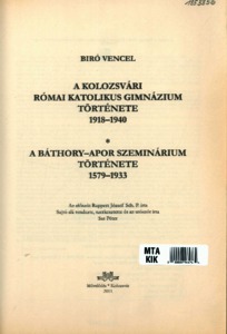 Sas, Péter (Egyéb): Sas Péter dedikációja Jankovics Józsefnek Bíró Vencel: A Kolozsvári Római Katolikus Gimnázium története, 1918-1940 ; A Báthory-Apor szeminárium története, 1579-1933 című kötetben [címlap és dedikáció]. (Publikálatlan) (2012)