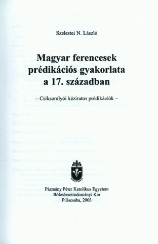 Szelestei N., László (Egyéb): Szelestei N. László dedikációja Jankovics Józsefnek a Magyar ferencesek prédikációs gyakorlata a 17. században : csíksomlyói kéziratos prédikációk című művében [címlap és dedikáció]. (Publikálatlan) (2003)