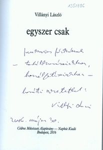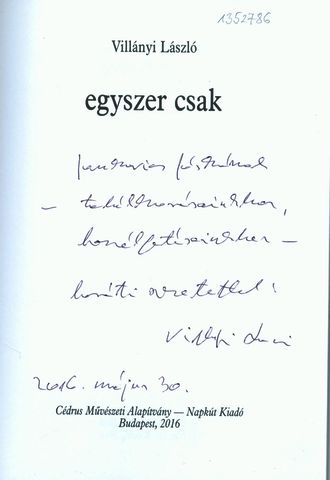 Villányi, László (Egyéb): Villányi László dedikációja Jankovics Józsefnek az Egyszer csak című kötetében[címlap és dedikáció]. (Publikálatlan) (2016)