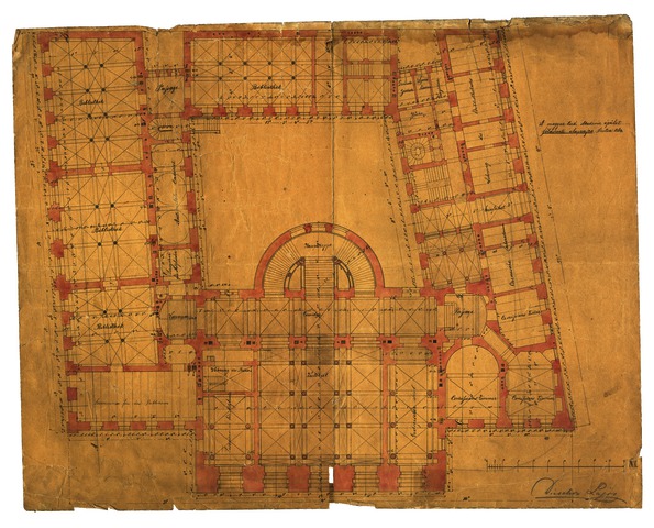Diescher, Lajos és Horányi, Károly (Festő, grafikus, Fényképész): A Magyar Tudományos Akadémia palotájának földszinti alaprajza. (Publikálatlan) (1864)