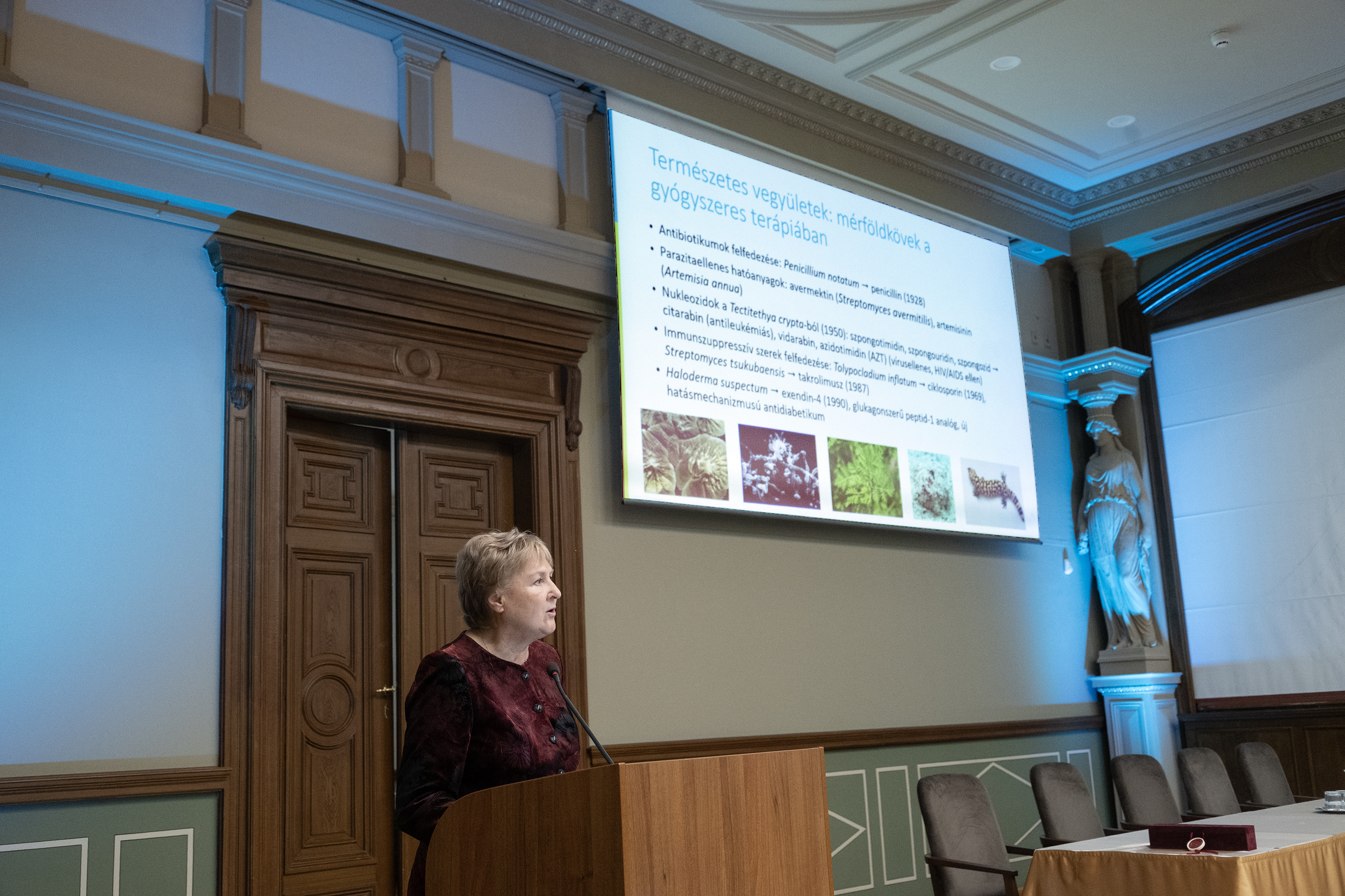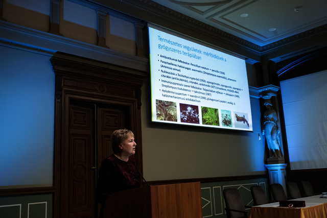 Természetes vegyületek a gyógyszerkutatásban: új eredmények, kihívások, perspektívák címmel 2025. október 22-én tartott székfoglaló előadás
