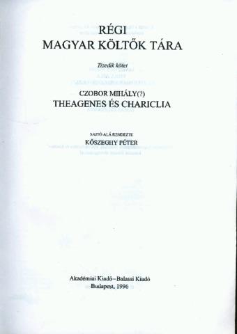 | További információk: | Az MTA Könyvtár és Információs Központ gyűjteményében őrzött példány raktári jelzete: 09.713. A Jankovics József hagyatéki könyvtárából származó példányt az MTA Könyvtár és Információs Központ nem vette fel állományába. A hagyatéki könyvtárról szóló ismertetőt ld. https://real-ms.mtak.hu/30582 |