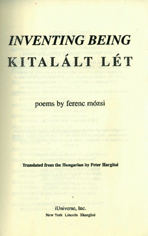 Mózsi, Ferenc (Egyéb): Mózsi Ferenc dedikációja Jankovics Józsefnek az Inventing being : poems = Kitalált lét című kötetben [címlap és dedikáció]. (Publikálatlan) (2004)
