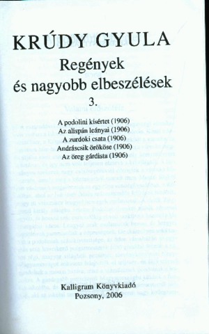 Szörényi, László (Egyéb): Szörényi László dedikációja Jankovics Józsefnek Krúdy Gyula: Regények és nagyobb elbeszélések 3. című művében [címlap és dedikáció]. (Publikálatlan) (2007)