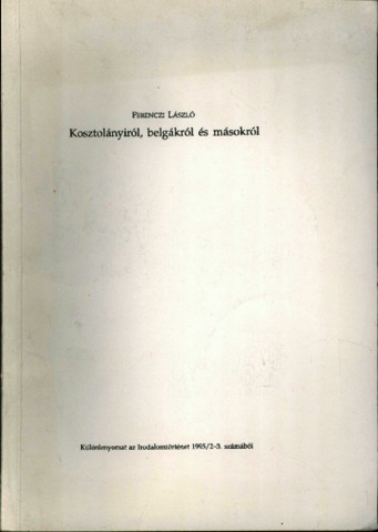 További információk: | A Jankovics József hagyatéki könyvtárából származó példányt az MTA Könyvtár és Információs Központ nem vette fel állományába. A hagyatéki könyvtárról szóló ismertetőt ld. https://real-ms.mtak.hu/30582. A különlenyomat a Kosztolányiról, belgákról és másokról című tanulmányt tartalmazza. | ||||||