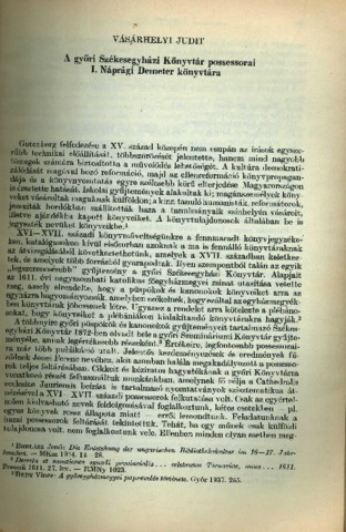 | További információk: | A Jankovics József hagyatéki könyvtárából származó példányt az MTA Könyvtár és Információs Központ nem vette fel állományába. A hagyatéki könyvtárról szóló ismertetőt ld. https://real-ms.mtak.hu/30582. A különlenyomat az A győri Székesegyházi Könyvtár possessorai I. Náprági Demeter könyvtár című tanulmányt tartalmazza. | ||||||