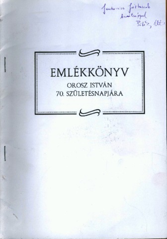 MEGHATÁROZATLAN (MEGHATÁROZATLAN): Dedikációja Jankovics Józsefnek az Emlékkönyv : Orosz István 70. születésnapjára különlenyomatában. (Publikálatlan) (2005)