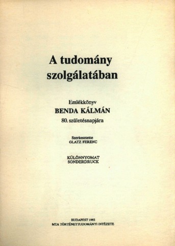 Várkonyi, Ágnes (Egyéb): Várkonyi Ágnes dedikációja Jankovics Józsefnek az A tudomány szolgálatában : Emlékkönyv Benda Kálmán 80. születésnapjára című kötet különlenyomatában [címlap és dedikáció]. (Publikálatlan) (1993)