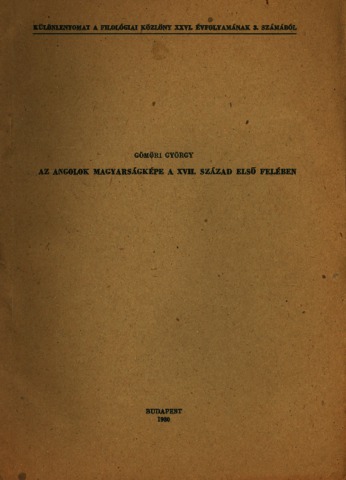 | További információk: | A Jankovics József hagyatéki könyvtárából származó példányt az MTA Könyvtár és Információs Központ nem vette fel állományába. A hagyatéki könyvtárról szóló ismertetőt ld. https://real-ms.mtak.hu/30582. A különlenyomat Az angolok magyarságképe a XVII. század első felében című tanulmányt tartalmazza. | ||||||