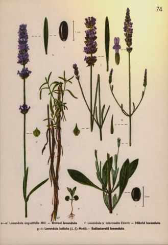 Lavandula angustifolia Mill. - Orvosi levendula; Lavandula x intermedia Emeric - Hibrid levendula; Lavandula latifolia (L. f.) Medik. - Széleslevelű levendula.