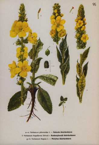 Verbascum phlomoides L. - Szöszös ökörfarkkóró; Verbascum thapsiforme Schrad. - Keskenylevelű ökörfarkkóró; Verbascum thapsus L. - Molyhos ökörfarkkóró.