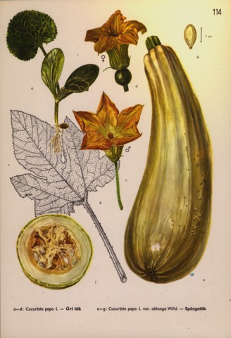 Cucurbita pepo L. - Úri tök; Cucurbita pepo L. var. oblonga Willd. - Spárgatök.