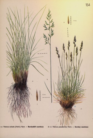 Festuca sulcata (Hack.) nym. - Barázdált csenkesz; Festuca pseudovina Hack - Sovány csenkesz.
