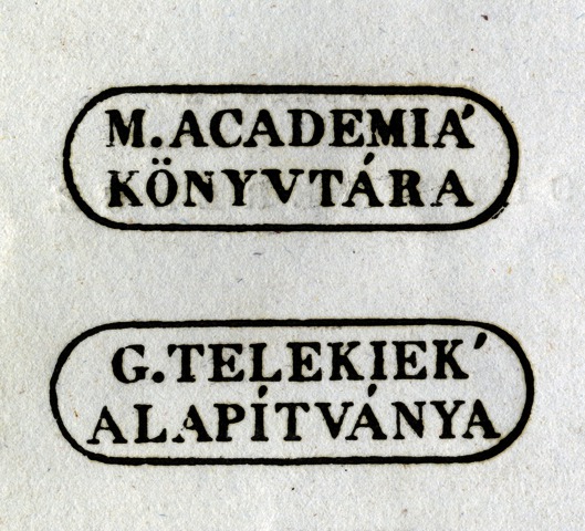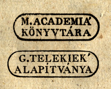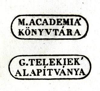 MEGHATÁROZATLAN (MEGHATÁROZATLAN): Az Akadémiai Könyvtár első pecsétnyomója és az alapító állományt jelölő Teleki-bélyegző. (Publikálatlan) (2016)